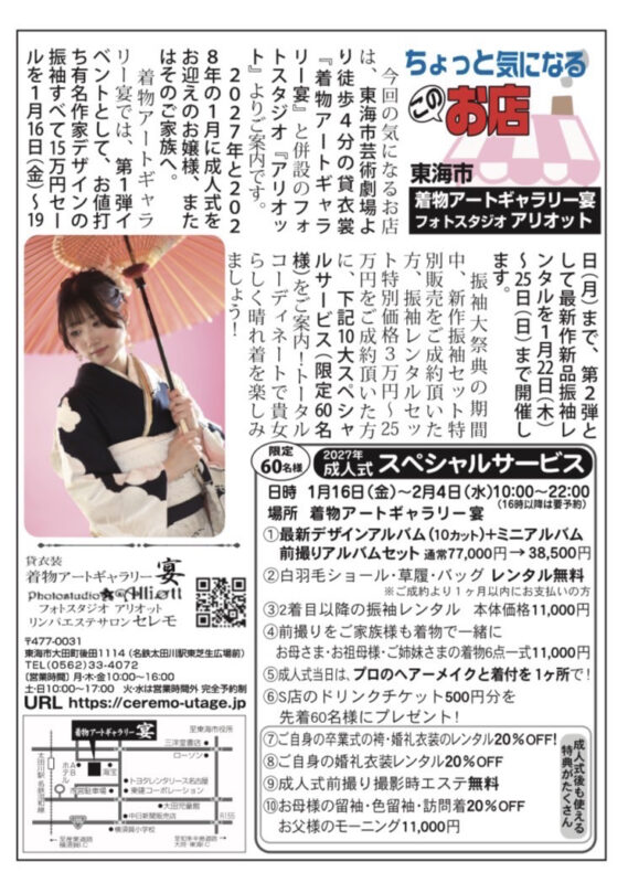 2027年と2028年の1月に成人式をお迎えのお嬢様、またはそのご家族へ。